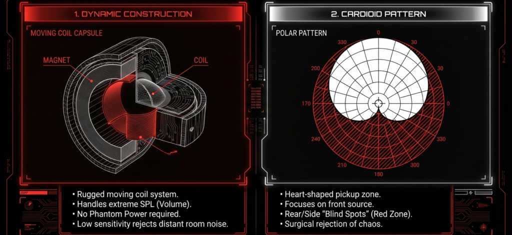 A cardioid dynamic microphone solves one core problem clean sound in imperfect rooms.