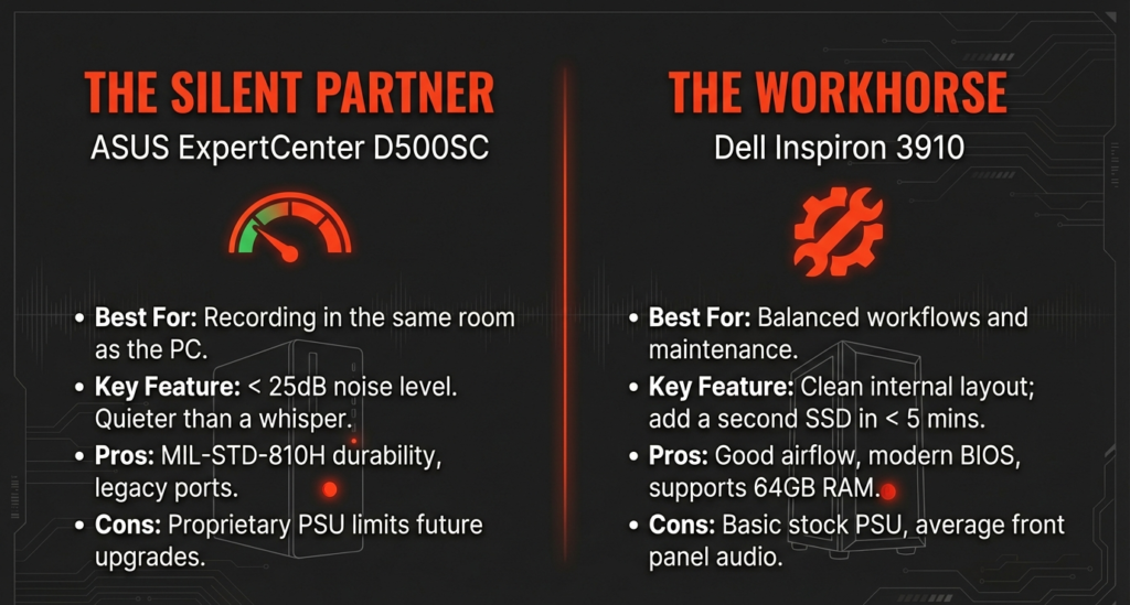 The ASUS ExpertCenter D500SC is easily one of the quietest machines I’ve ever used in a home studio.