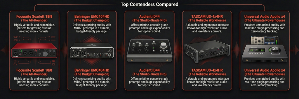 Each of these audio interfaces has its own standout features that set it apart. Let’s take a closer look at what makes these devices special and why they might be the perfect fit for your setup.