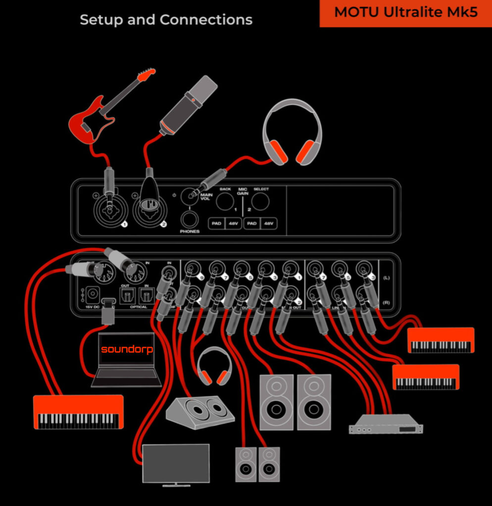 | MOTU UltraLite-mk5 | 18×22 | ESS Sabre32 Ultra DAC technology for clear audio. | Yes | Compact, portable setups and pro quality |
